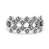 Anillo de plata de ley 925 envejecido de 1 cm de ancho en la parte superior, con 20 flores pequeñas.
