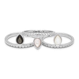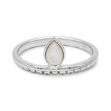 Anillo de plata de ley 925 de 2 mm de ancho y pétalo de madre perla blanca de 7 mm de largo y 5 mm de ancho. Baño de Rodio.