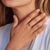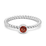 Anillo de plata de ley 925 twisted de 2 mm con piedra semipreciosa granate de 4 mm de diámetro. Baño de Rodio.