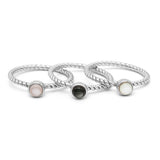 Anillo de plata de ley 925 twisted de 2 mm con madre perla rosada de 4 mm de diámetro. Baño de Rodio.