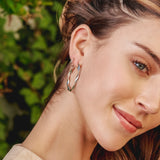 Argolla plata de ley 925 twisted de 4,3 cm de diámetro y 3,7 mm de ancho. Baño de rodio .Cierre presión
