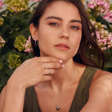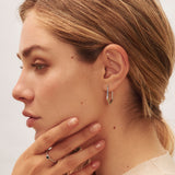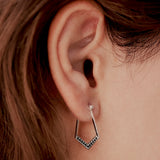 Aro plata de ley 925, con diseño triángulo invertido con 11 microcircones negros de 2,2 mm largo y 1,6 mm de ancho . Cierre catalán y baño de rodio.
