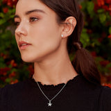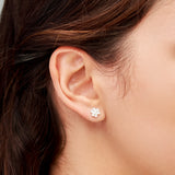 Aro plata de ley 925 con diseño flor de 5 mm de ancho y 3 rhinestones. Cierre presión.