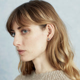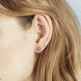 Aro plata de ley 925 con diseño media esfera de 6 mm de diámetro con rhinestones. Cierre presión.