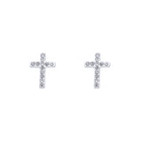 Aro plata de ley 925 con diseño cruz de 1 cm de largo y 6 mm de ancho con rhinestones. Cierre presión.