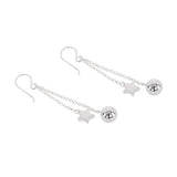Aro plata de ley 925 cadena doble de 2,5 cm y 3,5 cm de largo con diseño estrella y esfera. Cierre gancho