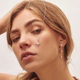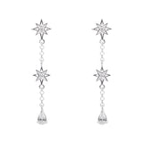 Aro plata de ley 925 de 4 cm de largo con 2 estrellas de plata y gota con circon. Cierre presión