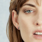 Aro plata de ley 925 con diseño hoja de 1 cm de largo. Cierre presión