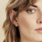 Aro plata de ley 925 con diseño semicirculo de 1 cm de diámetro y esfera de plata. Cierre presión