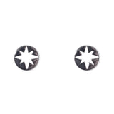 Aro plata de ley 925 con diseño circulo y estrella de 8 puntas de 1 cm de diámetro. Cierre presión