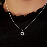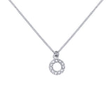 Colgante de plata de ley 925 con argolla y circones de 1 cm de diámetro incluye cadena de 41 cm de largo. Cierre reasa y baño de rodio