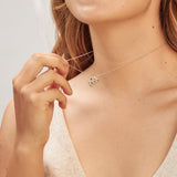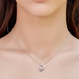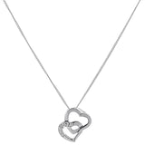 Collar de plata de ley 925 de 43 cm con dos corazones de 1 cm entrelazados, uno de ellos con microcircones. Cierre mosquetón