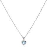 Colgante de plata de ley 925 de 6 mm con diseño corazón y piedra topacio celeste claro. Incluye cadena de 41 cm mas 5 cm de extensión. Cierre reasa. Baño de rodio