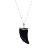 Colgante plata de ley 925 con diseño cuerno de Onix negro de 1,7 cm ancho y 3,1 cm de largo, incluye cadena de 51 cm de largo y extensión de 5 cm. Cierre reasa.
