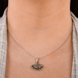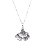 Colgante de plata de ley 925 con diseño hoja ginko de 2 cm ancho y 2,3 cm de alto. Incluye cadena de 46 cm de largo y extensión de 5 cm. Cierre reasa