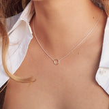 Collar de plata de ley 925 de 41 cm de largo mas extensión de 5 cm con anillo de 1 cm de diámetro. Cierre mosquetón.