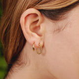 Aro plata de ley 925 Baño oro 14k con multiples bolitas, de 1,5 cm de diámetro y cierre presión.