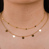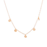 Collar de plata de ley 925 Baño de oro 14k  de 35 cm de largo mas extension de 7 cm con 5 platillos de 6 mm y cierre mosquetón.